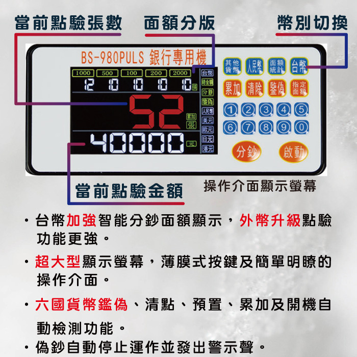 BS-980 銀行等級六國幣別專用 點驗鈔機