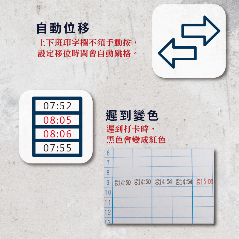 - 雙色列印(遲到打印紅色)